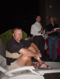 Friday Clam champ Jim Stuart-Young fell off the pace after surviving a sculled pitch assault to his torso from playing partner China Jim.  That evening, preventive anesthesia in the form of Mexico Lindo margarita's were administered to the field in volume.