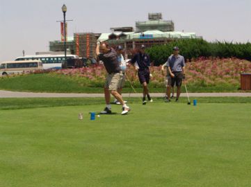 The threat of light early round rain didn't dampen the spirits of the Singing Pro David Roy and his partner Rob "from Nike" Callaway who grabbed the early lead at -8. The Suzhou Sun Island Scramble yielded a tight leaderboard with Jones/Apte and McGrail/Haschka on -7 and Horsfield/Mulligan and Beck/Hamilton close behind on -6. The entire field stayed within 10 strokes with Quicho/Varconie bringing up the rear on +2.