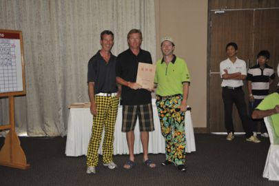 SL Goh showed superhuman restraint by not consuming a single drink playing with the Pin and their team paired with Sammy and Gobbler.  The Goh Man and the Pin carded a respectable scramble 68, clawing their way several rungs up the leaderboard, while the Gobbler set a new course record with 5 whiffs and Mulligan ran out of synonyms for 'feck' and still couldn't find his jumper.  Still you gotta give him credit for his first outing as a Crab.  You da man Sammy.
